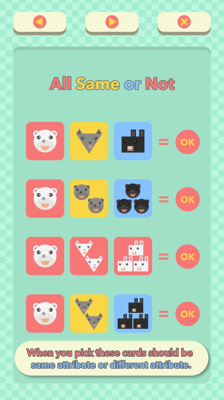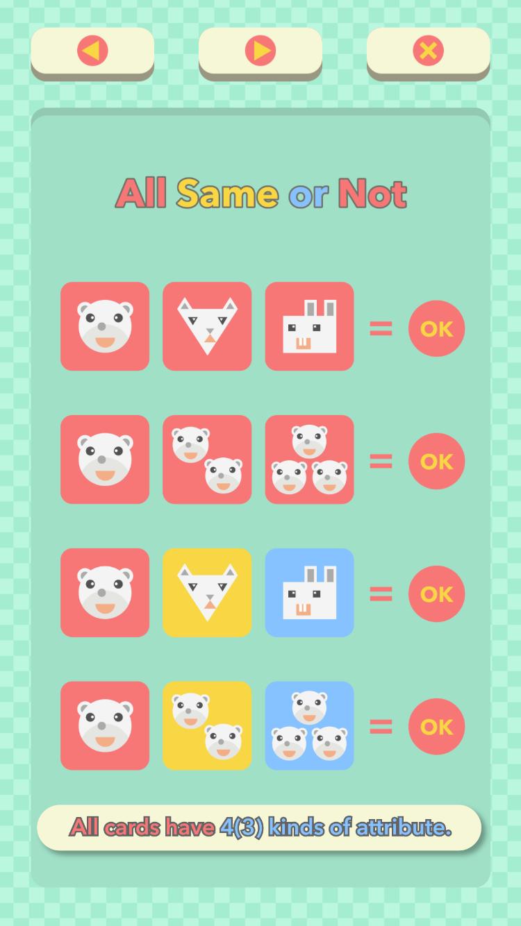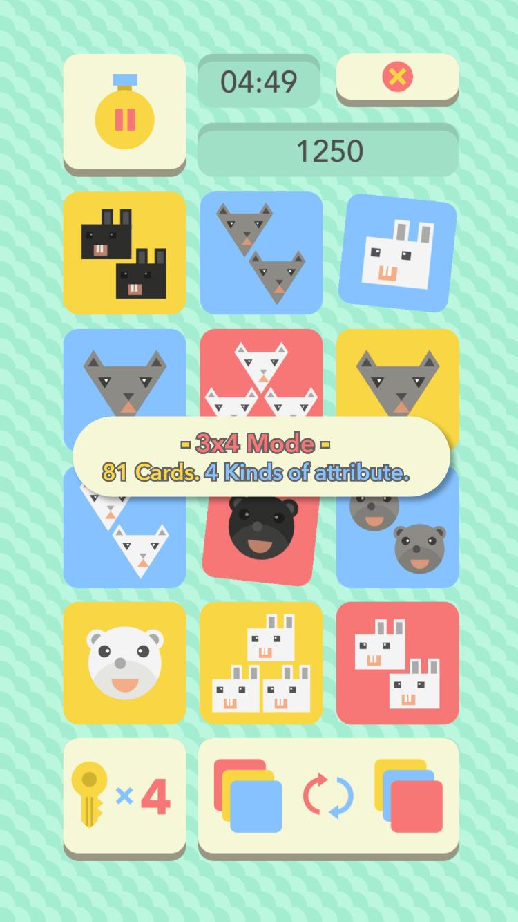 -3x3模式:27张卡。 3种属性。如果您找到所有卡组合,则可以获得新的卡片。
